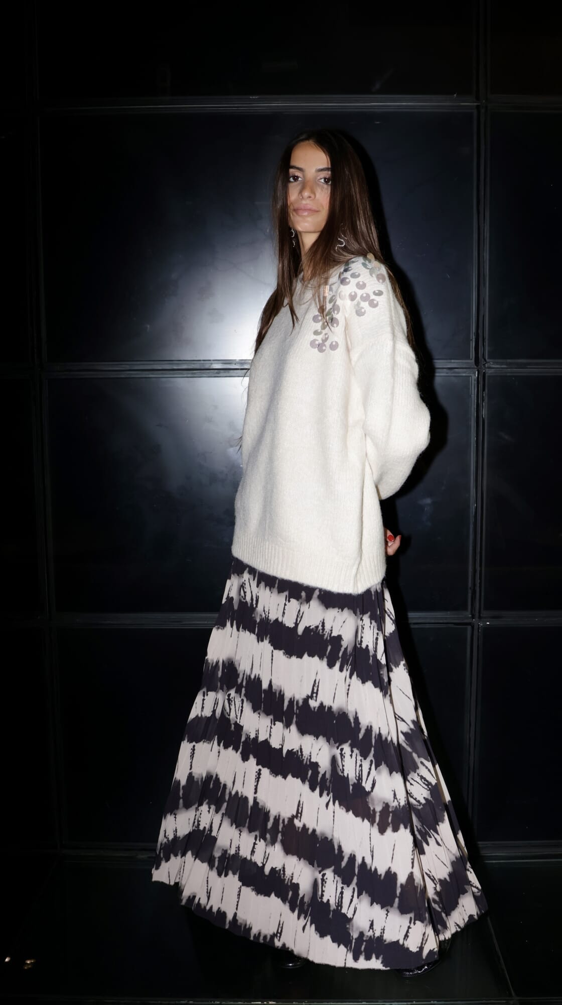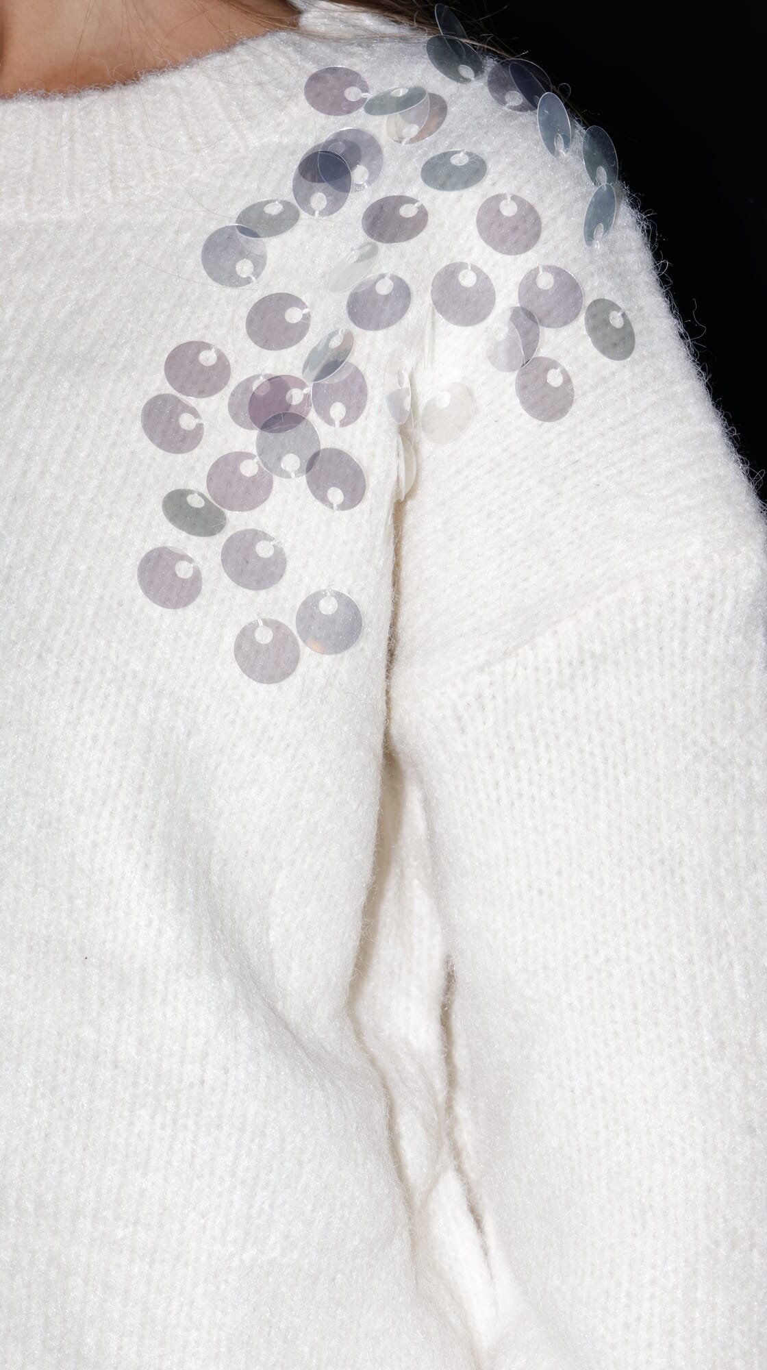 Buzo de punto escote redondo corte clasico con detalle bordado lentejuelas.