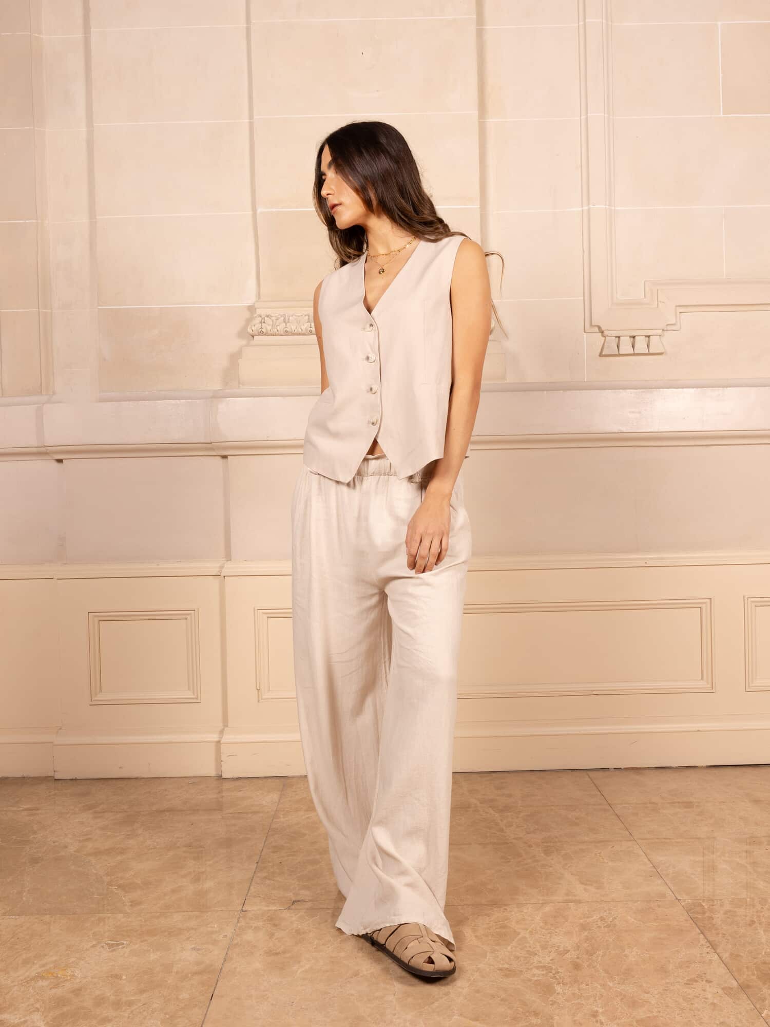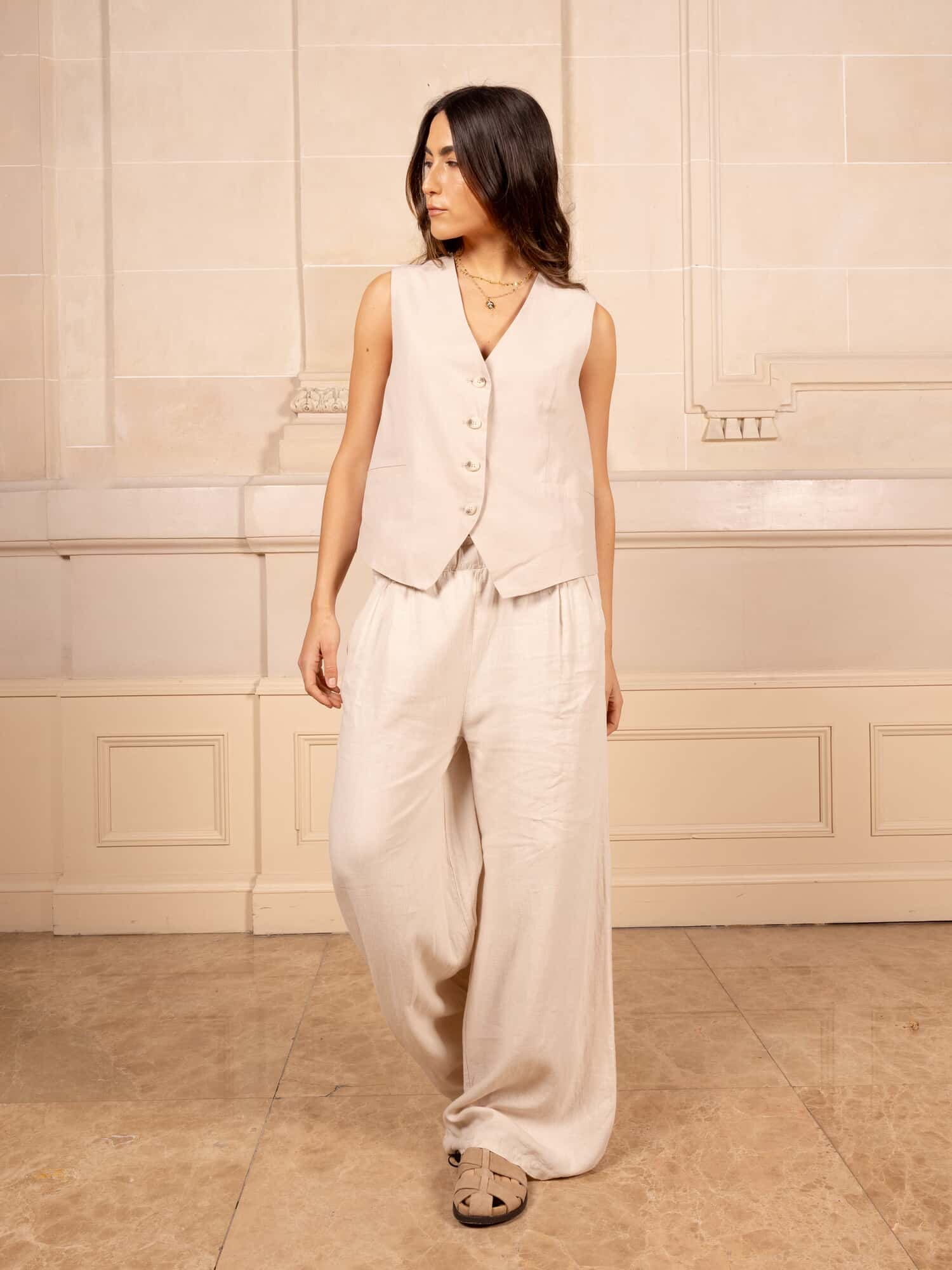 Chaleco de lino corte sastrero.